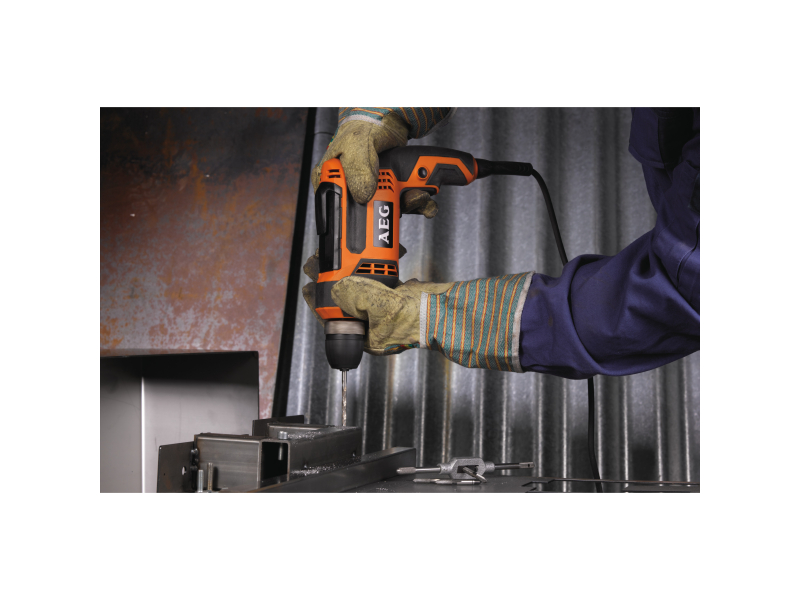 - Rychlostní stupnice a zámek na vypínači pro stacionární vrtání