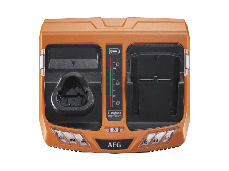 - Nabije 18V 5.0Ah akumulátor z hlavního 240V zdroje za 60 minut a pomocí 12V DC zástrčky za 90 minut