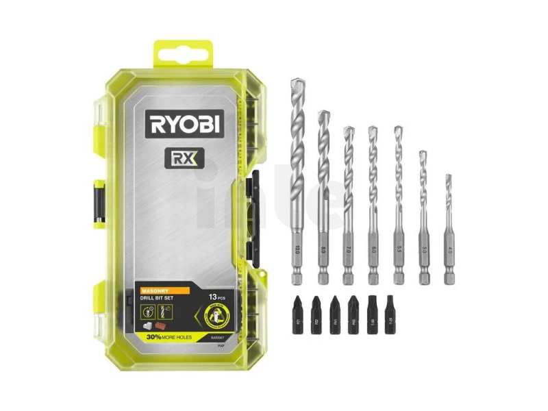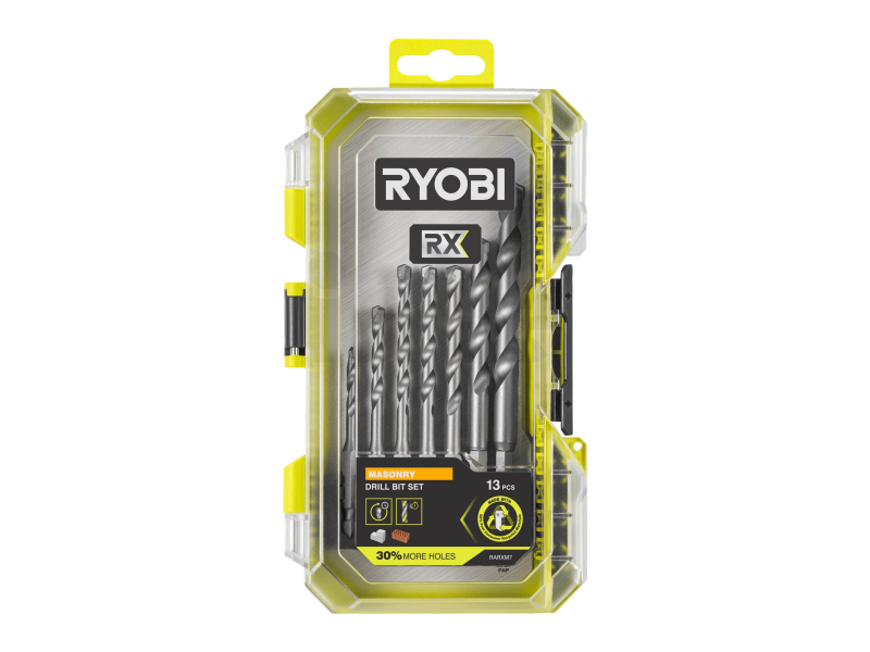 Sada RYOBI RARXM7 RX vrtáků do zdiva je určena pro náročné vrtací práce do cihel, betonu, tvárnic a kamene. Vrtáky RX poskytují až o 30 % více otvorů než základní řada RYOBI®, což zaručuje maximální produktivitu a dlouhou životnost.