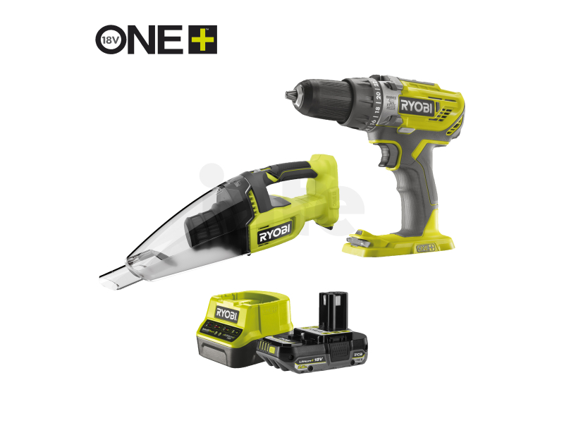 - 18V ONE+™ 2dílná kombo sada obsahuje18V příklepovou vrtačku a 18V ruční vysavač.