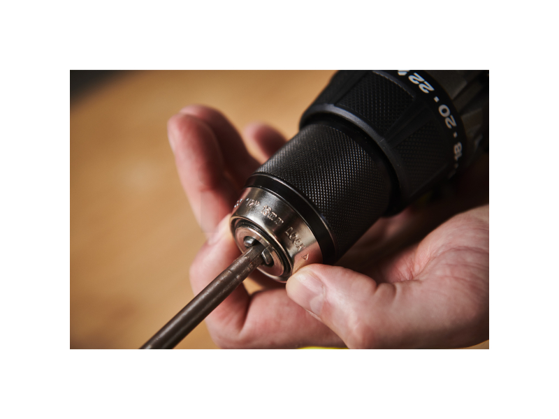 • Celokovové 13mm ráčnové sklíčidlo pro vyšší pevnost uchycení vrtáků a dlouhou životnost.