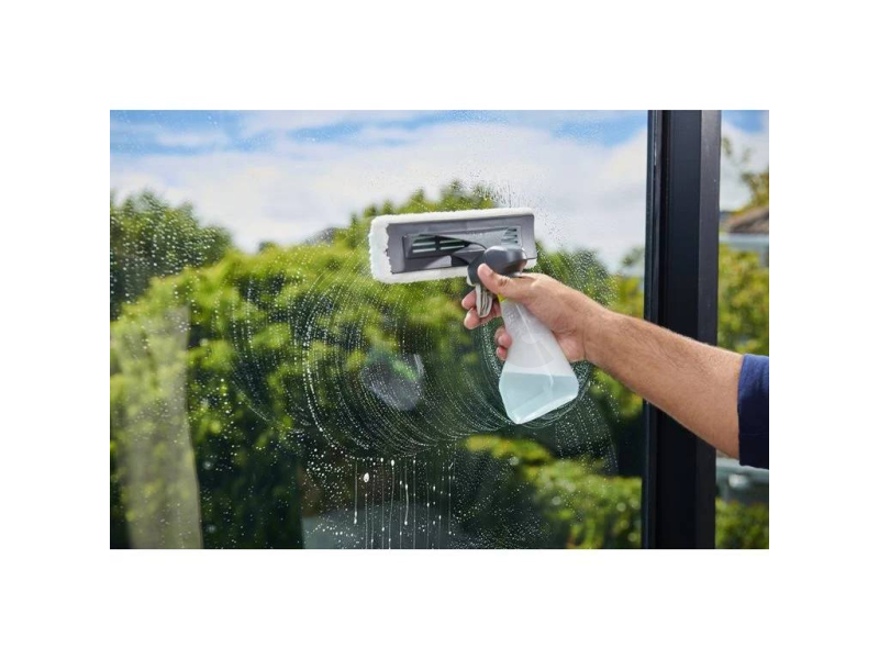 Díky nádobě na špinavou vodu o objemu 100 ml nebudete muset častěji vyprazdňovat, a ochrana baterie s krytím IPX4 zajišťuje bezpečné používání i při kontaktu s vodou. Praktická rozprašovací láhev s hadříkem z mikrovlákna umožňuje pohodlné nanášení čisticího prostředku a důkladné rozleštění povrchů.
