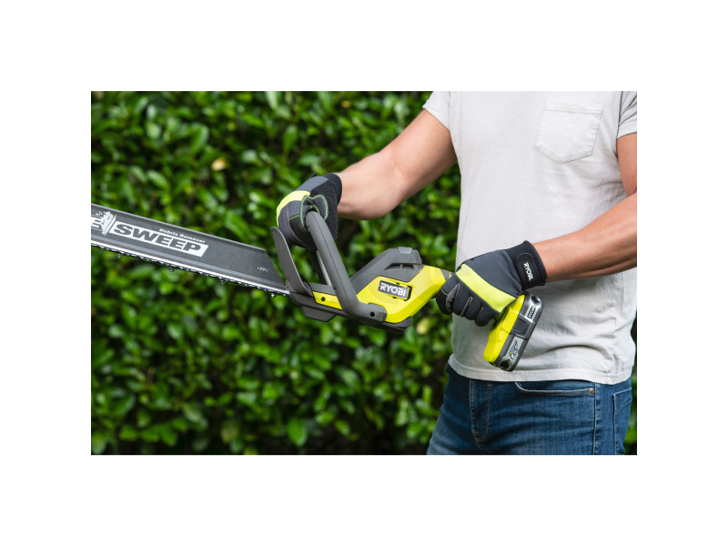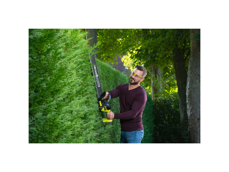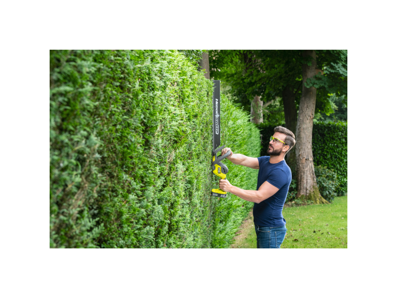 - Plotostřih je vybaven 55cm lištou s rozestupem nožů 24 mm, což umožňuje efektivní stříhání i silnějších větví a větších ploch živého plotu.