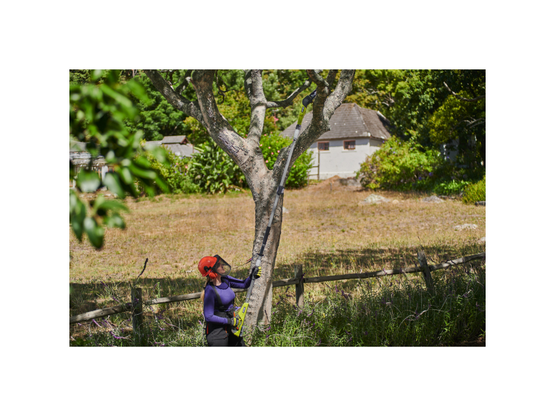 - Teleskopický držák umožňuje vysunutí až na celkový dosah 2,9 m pro prořezávání nejvyšších větví a zároveň eliminuje zbytečné riziko použití žebříku.