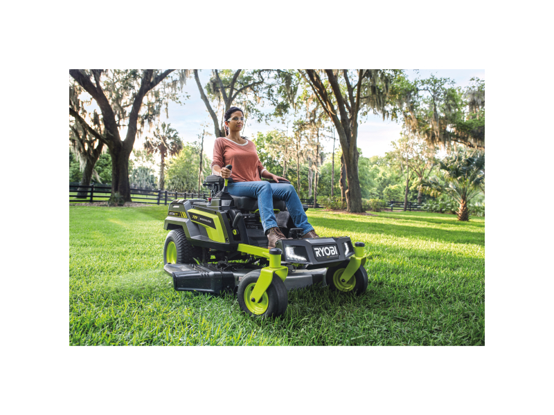 • První zahradní rider RYOBI® napájený lithium-iontovým akumulátorem s nulovým počtem otáček