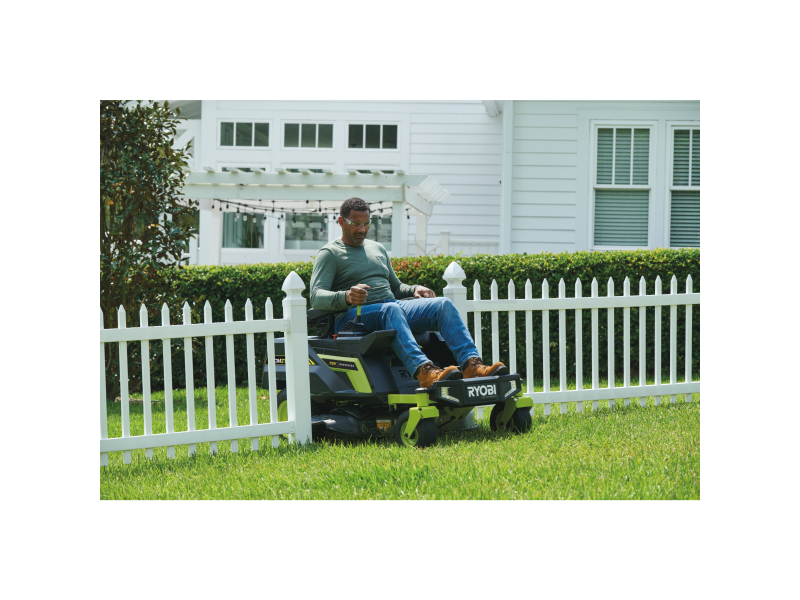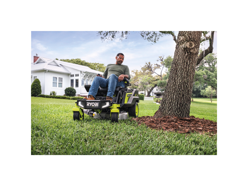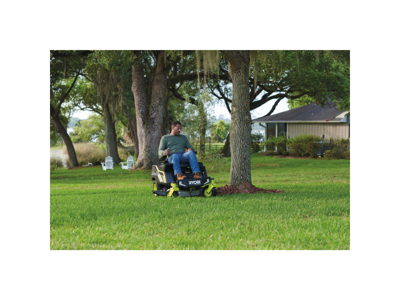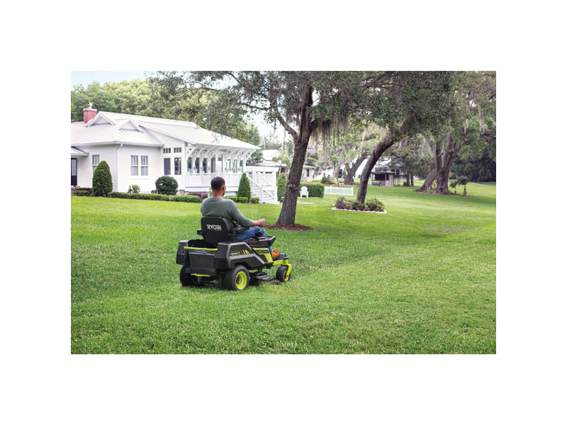 • První zahradní rider RYOBI® napájený lithium-iontovým akumulátorem s nulovým počtem otáček